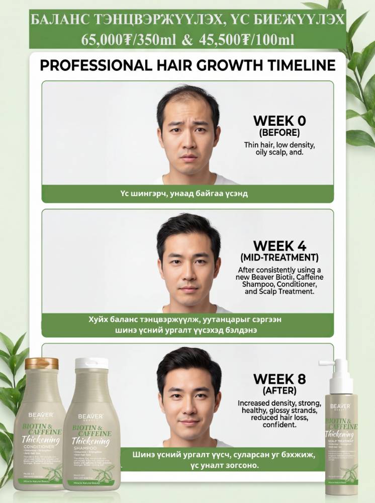 Биотин, Кафэйн-г нэг дор агуулсан төгс найрлагын зохидолгоотой шампунь, ангижруулагч!